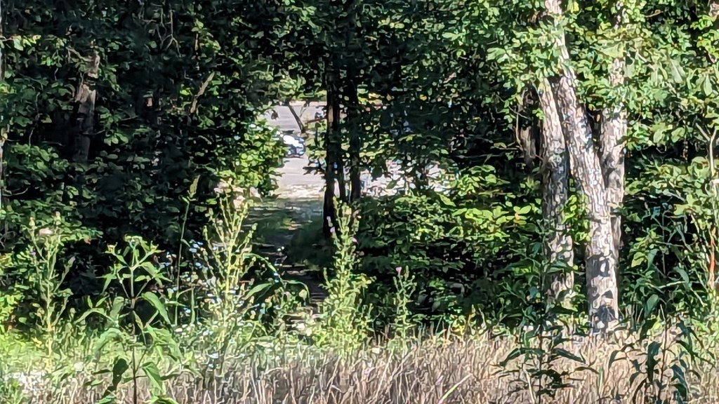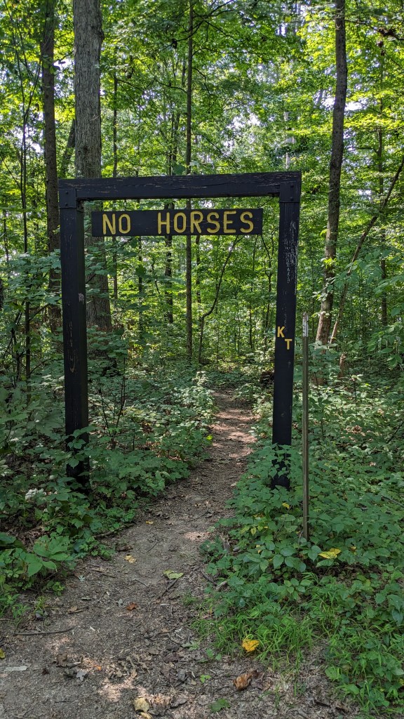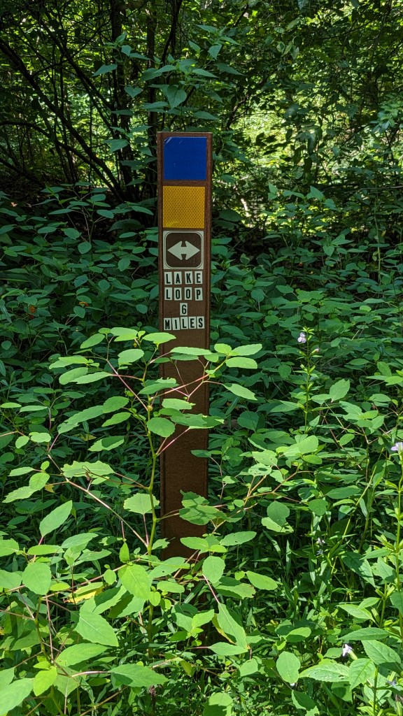 Once I crossed the main entrance road the trail widened back out and the entire west side of the trail was easy to follow again. As I got closer to the Day Use parking area I came across 4 horses and their riders enjoying a Friday evening ride. I also saw my first deer. I couldn’t get a good photo. In fact, I made a video which is easier to see, because the trail was constantly swatting bugs. Otherwise it perfectly blended in with the thick underbrush.