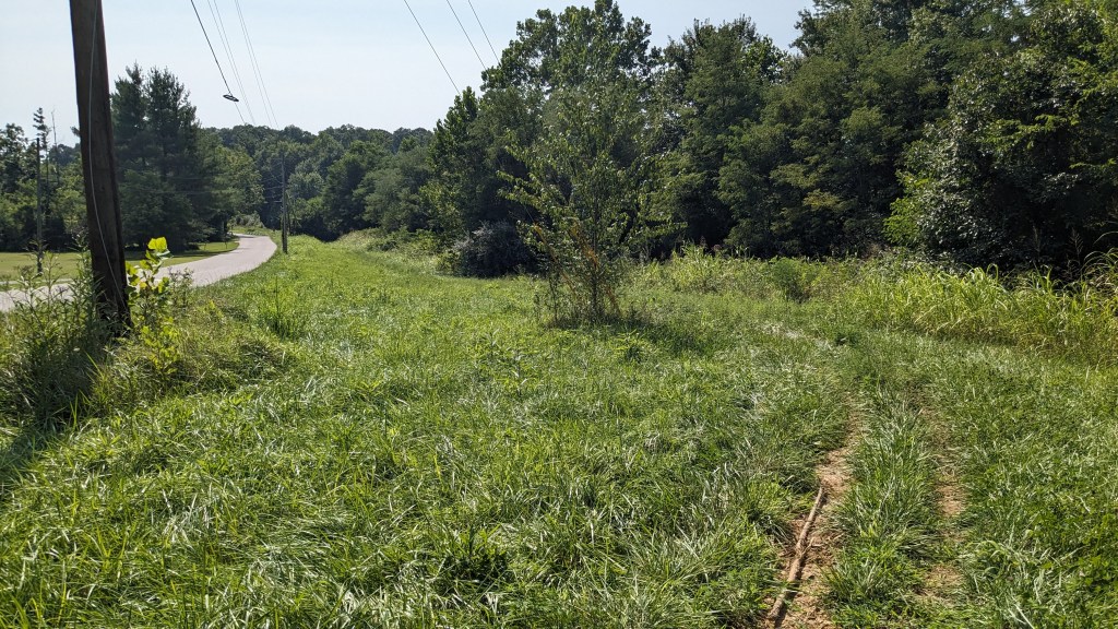 When I got to the southern section of the trail along the side of the Dam, the trail almost disappeared. It became a very small footpath along the boundary road. At one point I was thinking I had missed the trail, because it was so different and suddenly hard to follow. The Knobstone Trail travels along the top of the dam and probably has some nice views, but this trail was below the dam, and so once again no views of the water.