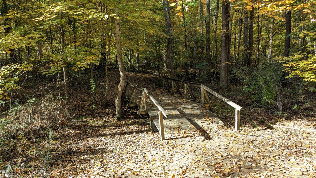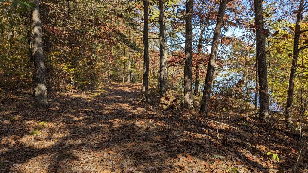 The fall colors made for wonderful views around every corner. The beautiful wooden bridges were picturesque among the blanket of leaves everywhere. I could not have asked for a more perfect day or time to come here. The lake was peaceful with only a single boat out on the water. Trail 4 comes out to a peninsula with an unobstructed view of the lake and even a bench to sit on while enjoying it. There were parts of my walk which had a view of the lake through branches and bushes, but much of my day was just a casual winding walk through the beautiful fall forest.