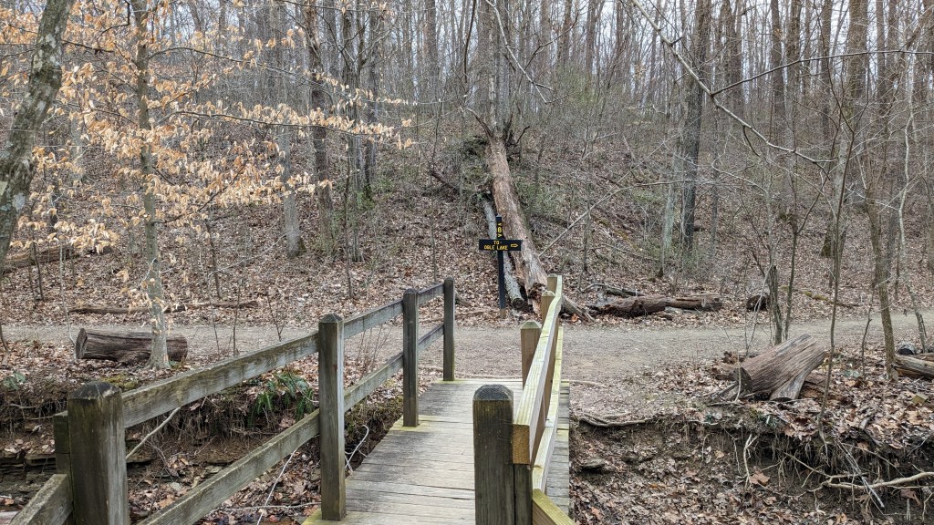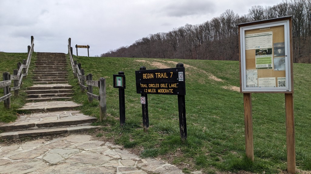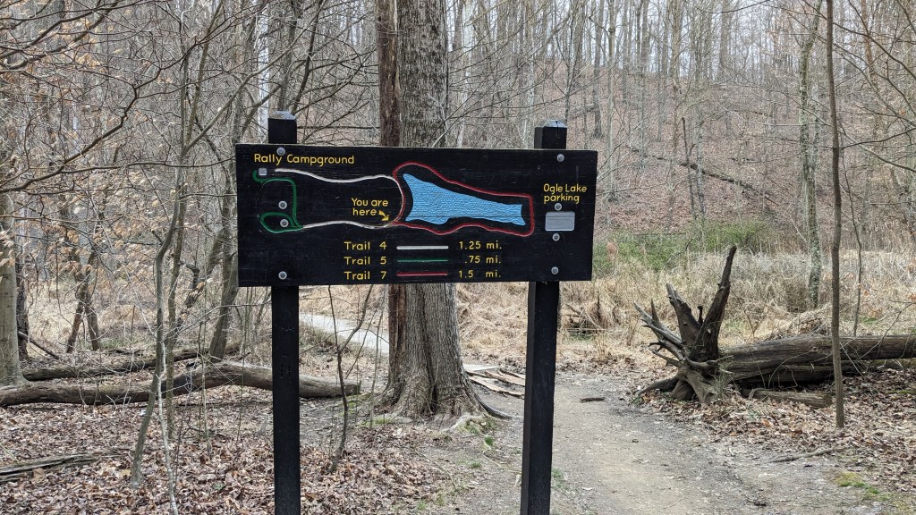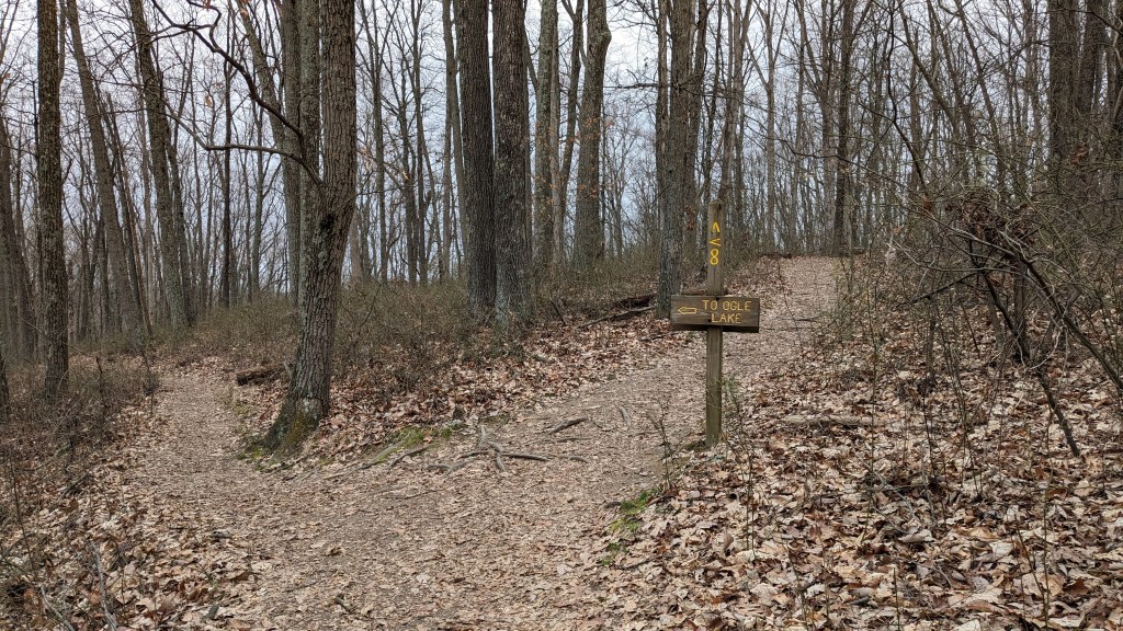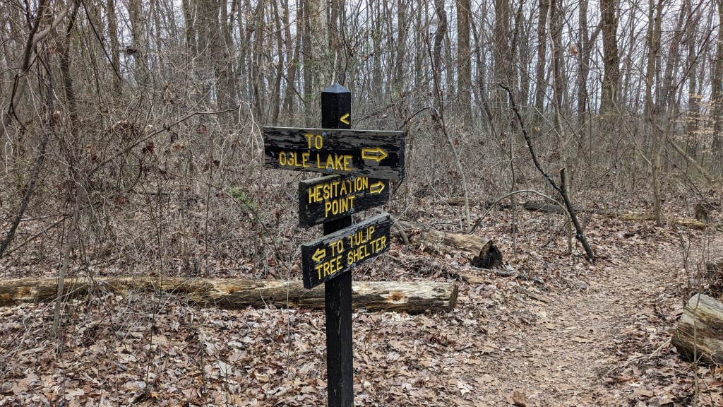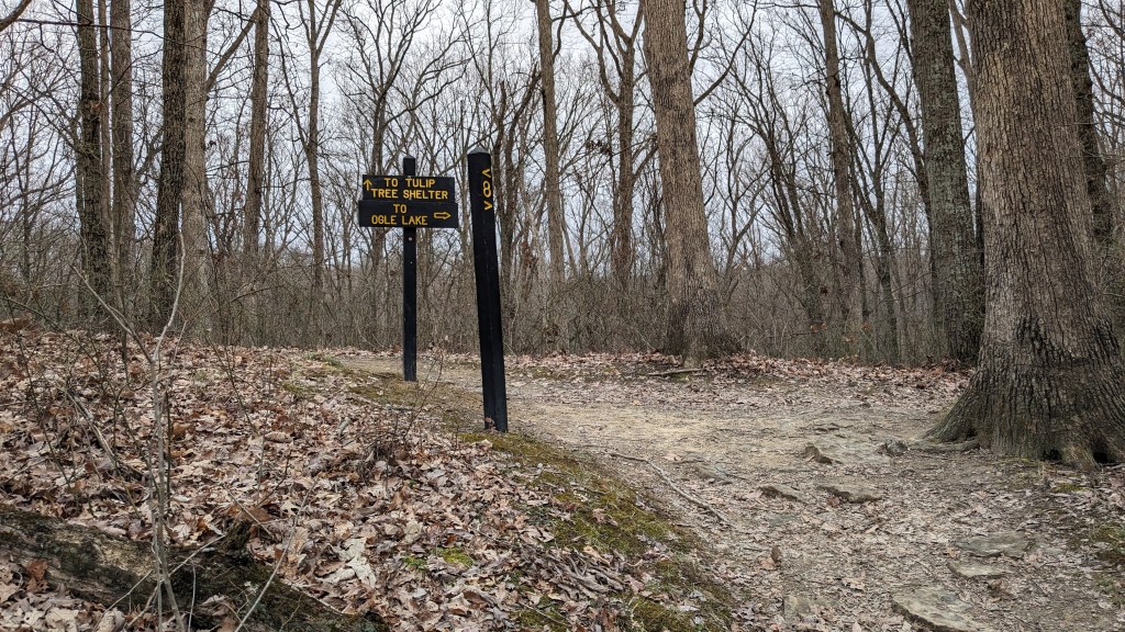 Trail 8 is a 3.7 mile loop with the West Entrance, and Ogle Lake being two of its way points. I took the short way to the lake which was counter clockwise. The trail had great signage and was easy to follow. There were small wooden bridges even over the smallest of streams, and despite the recent rains, the trails were all in great condition. There are ups and downs despite the overall drop from the West Entrance to the lake. Over all this section, it was an enjoyable, silent, and isolated hike. The cold, I think, was keeping even many birds cuddled up instead of out making noise.