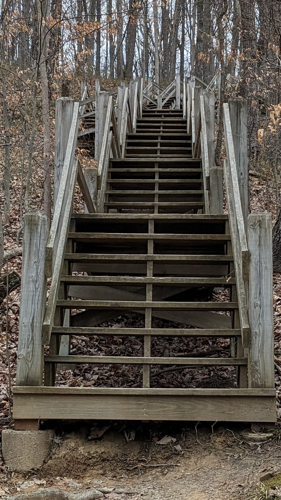 The trail from the top of the stairs led in two directions and there were zero signs. Nothing to point me in the right direction. The map was also of little help as it did not accurately show this section. I actually started off in the wrong direction and then after a minute realized I was not circling back to where I needed to be. After such good signage everywhere, I was really disappointed to see none here where it was actually needed.