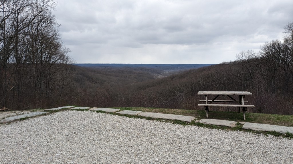 It was a cold cloudy day. Of course it was, the first day of spring is tomorrow. Despite being cold, it was my chance to hike on a third consecutive Monday. I didn’t want to give that up. So, I headed out to Brown County State Park, a park I have visited and camped in many many times as a child and youth. My family camped here often, and my Boy Scout troop camped and hiked here on multiple occasions. I probably know this park about as well as I know any Indiana State Park. Despite the cold temperatures and unsure weather, I was excited to return.