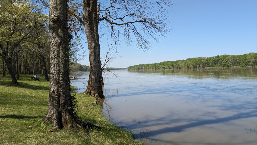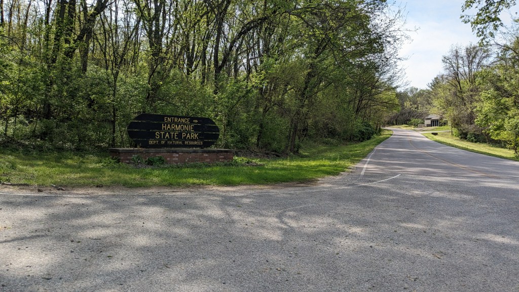 Harmonie State Park is about 2 hours west of Louisville and 25 miles northwest of Evansville. It is just off exit 4 of I-64, right up against the Wabash River and thus the state line with Illinois. Today is probably the hottest day of 2024 so far, with the high temperature close to 90.