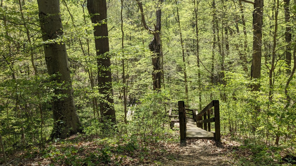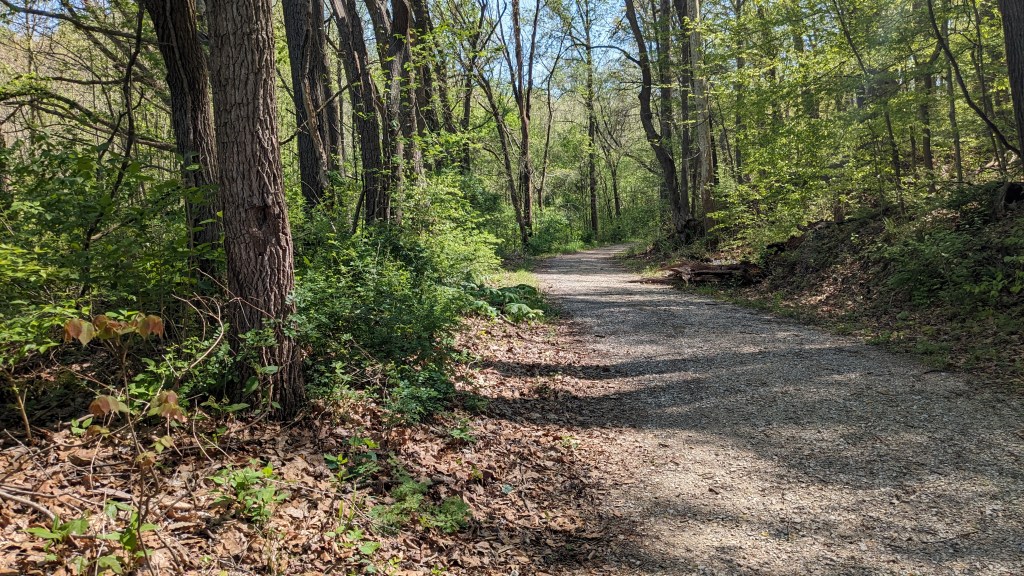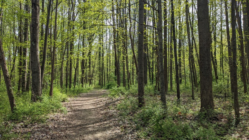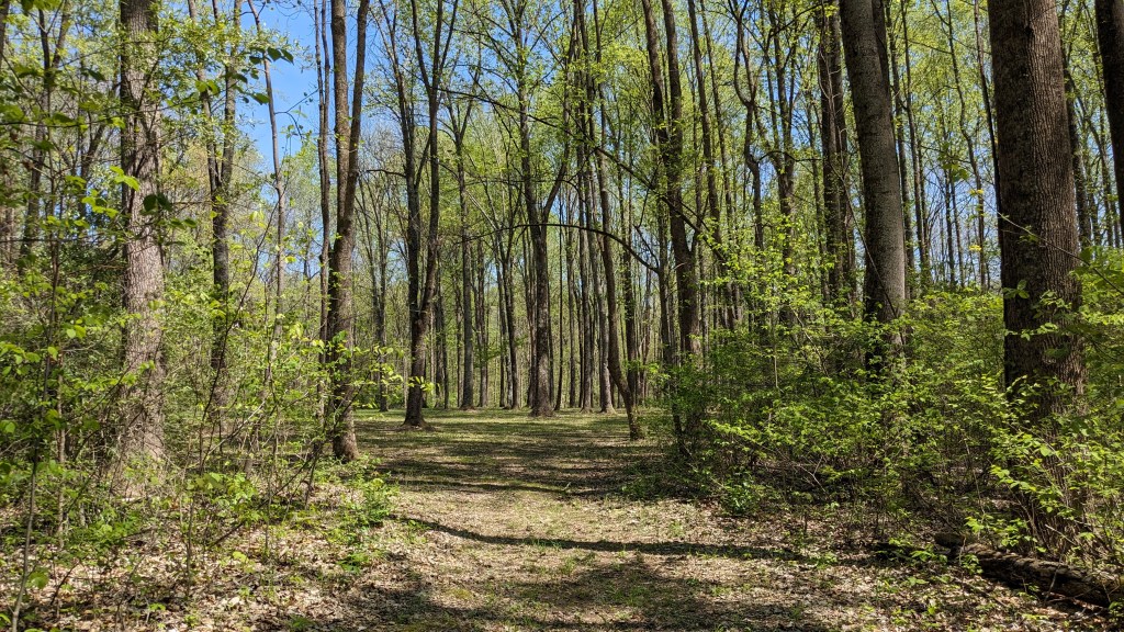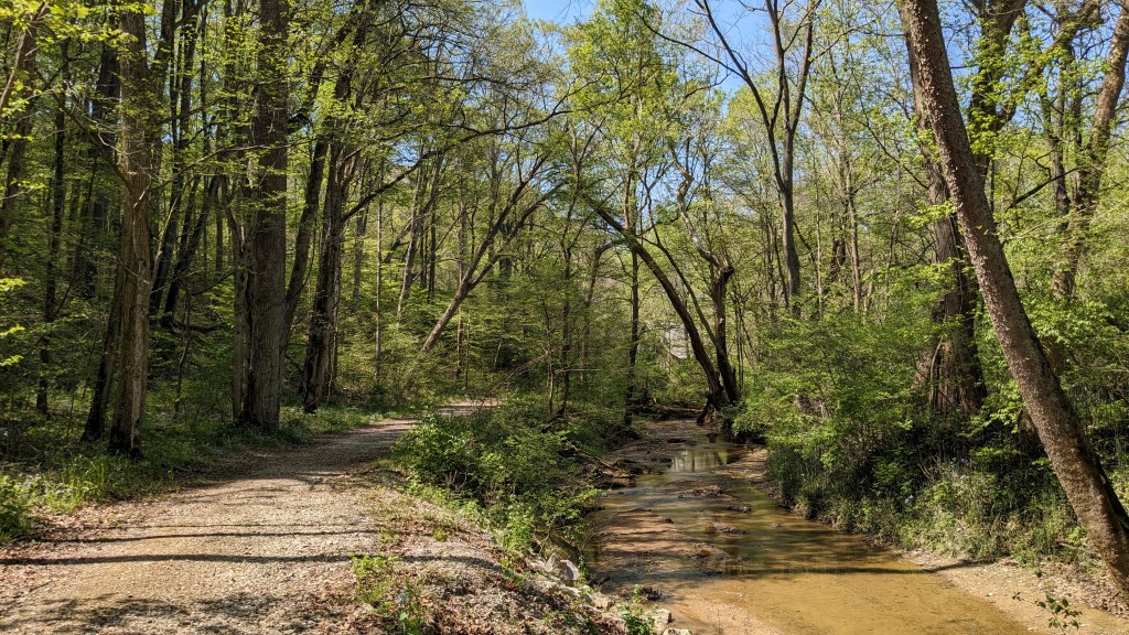 I left my window down while driving through the park and heard hundreds of birds. It was far more than I had heard in a long time. I also noticed that the trees were all tipped in green with new buds. Spring has come to Harmonie State Park. The green meant that I wasn’t going to have great views, but this park is fairly flat, and so long vistas were not going to be an option anyway. I was just happy to hear so many birds.