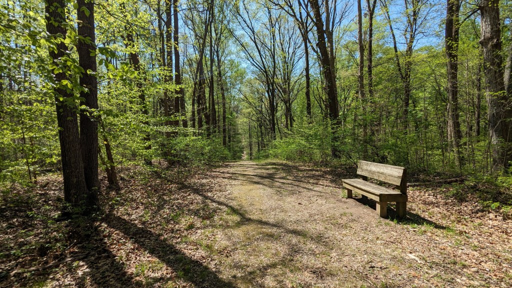 In the end, I was glad that I had hiked every single trail and did a “Complete Harmonie” hiking day. All in all, it was just over 10 miles and took about 4 hours, but it was worth it since I doubt I will be back to this park anytime soon. The birds accompanied me with a great variety of songs the whole day. I even got a picture of one of the many squirrels I heard and saw. The terrible lack of trail signage notwithstanding, I had a very good day.