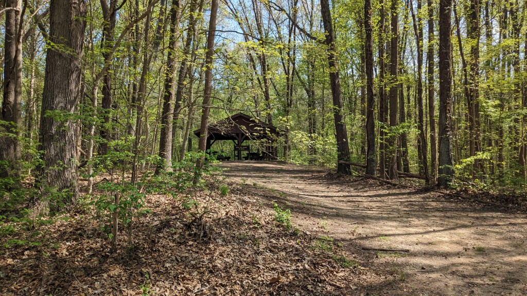 Trail 6 was a simple loop about 0.75 miles long. It would be a nice easy hike for those enjoying the picnic area. A group of police officers were enjoying the picnic shelter when I finished Trail 6. They had come in a half dozen vehicles, but didn’t seem to be there for business. As I walked back to the road, I realized that while at the trail junction there was a large sign pointing me to Trail 6 from this direction there were no signs at all. Had I not known where the trail came out of the woods, I might not have been able to find it.