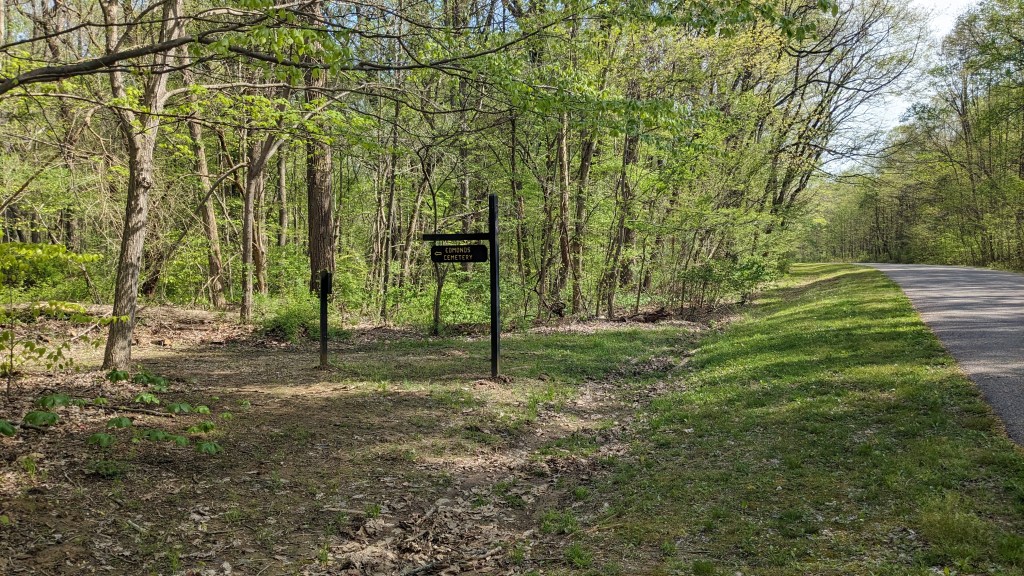 As I hiked along, I felt pretty good, so I decided to drive back and hike Trail 7. This meant I will indeed have hiked every hiking trail in the park. There was no parking at the trailhead, so I had to park a quarter mile away and walk along the road before I could even start the trail itself. Trail 7 is the only non-loop trail in the park. It leads to a small family cemetery in the middle of the woods where two women are buried. The trail was very easy and flat though it wound through the woods like a serpent. Probably would have been half the distance, if it had been straight. This part of woods was farther from the river and I noticed it had less undergrowth and looked much more like the dryer woods in the other state parks I have visited so far.