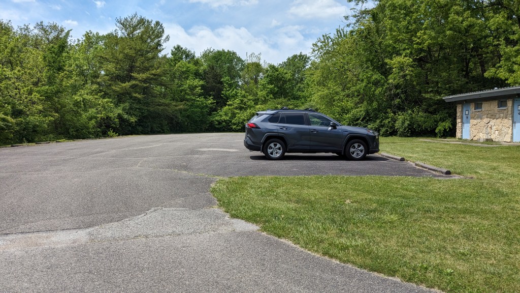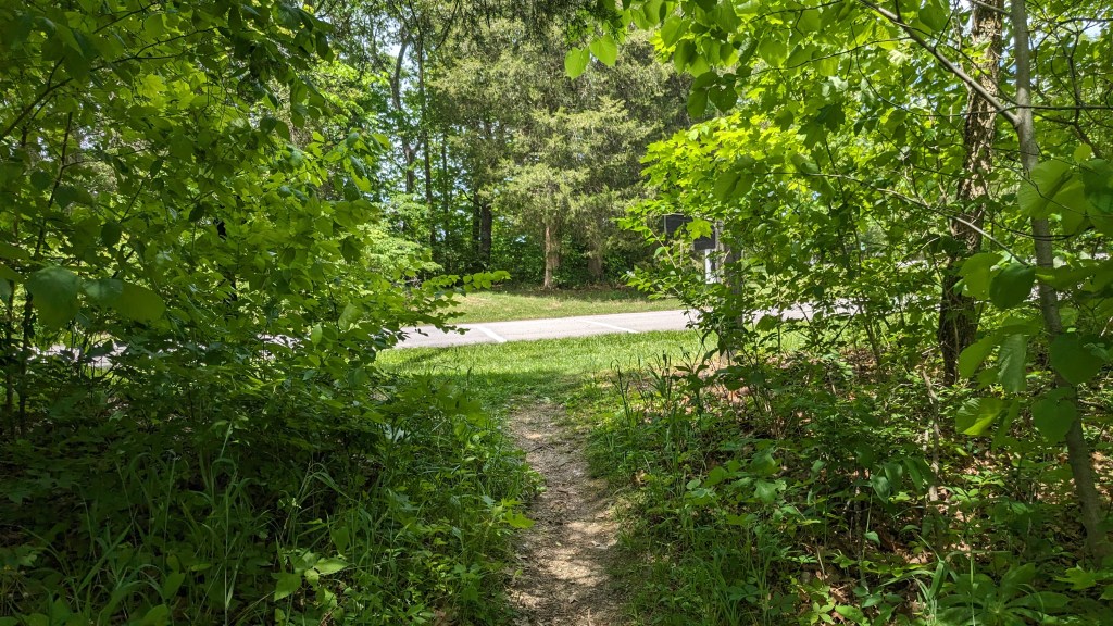 Eventually, I came back to the general area of where I started. Where I parked was across the road from the Naturalist Cabin. I could see once I looked at the map, that campers in the north part of the park could use this part of Memorial Loop to get the Naturalist Cabin without walking on the road. For that purpose, this part of the trail would be really nice. When I saw the turn off for the cabin, I knew I was back to where my car was. Luckily, there was no ticket on my car. Parking on the grass here appears to be just fine.