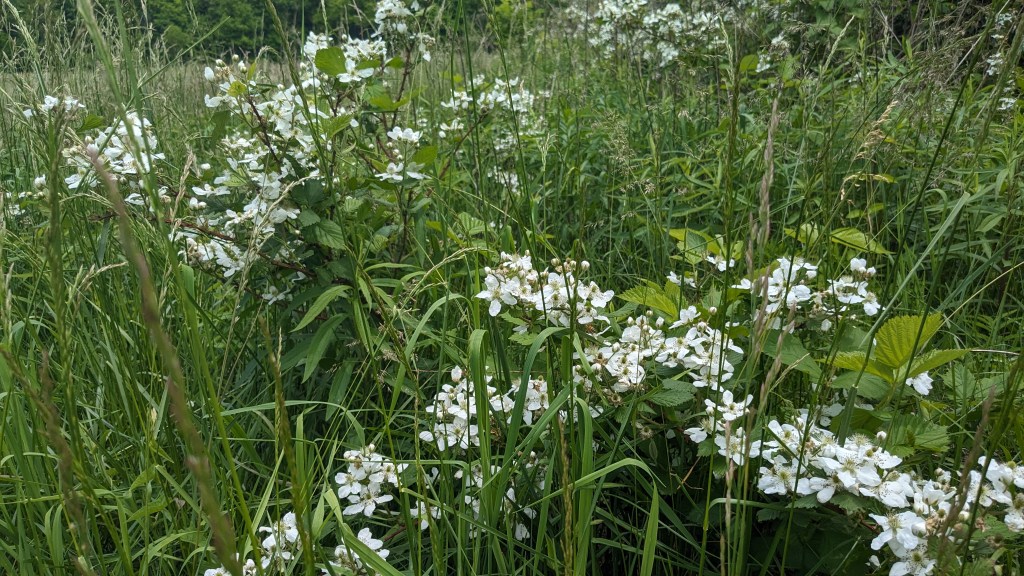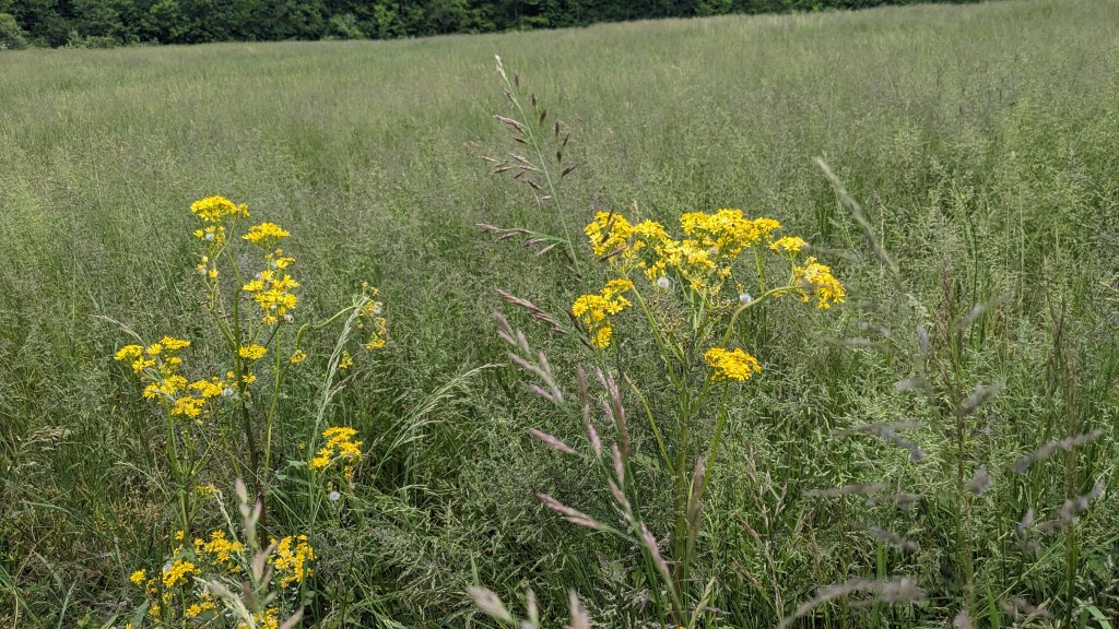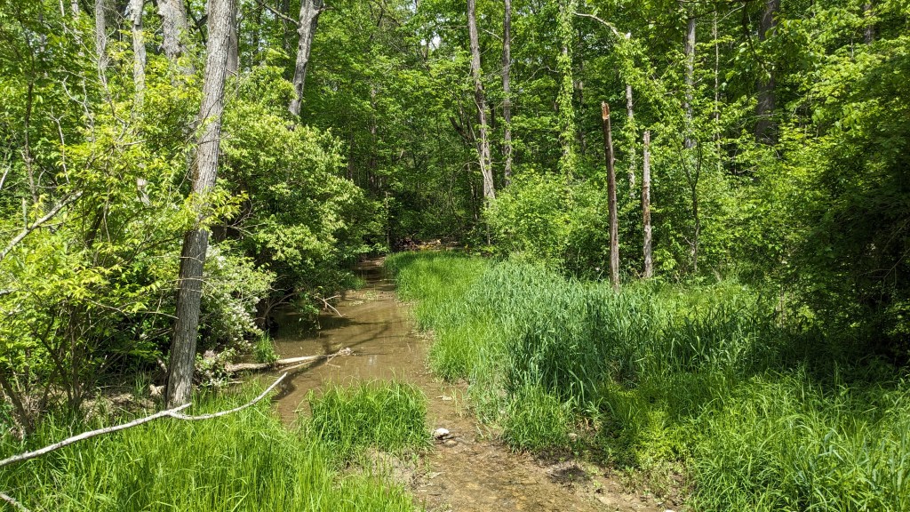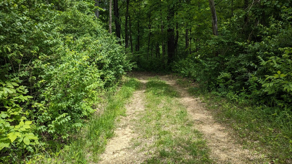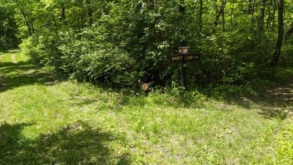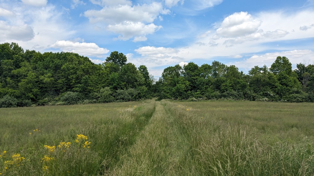 I called it a fire road, but really at this point it was two tire tracks in a field of very tall grass. My first thought was that I would need to check for ticks after this adventure. I crossed one large field after another picking the tire track that seemed to have more wear and less grass dragging along my pants. In all, there were 5 large fields I had to cross. Each was divided by a small treeline. Finally, I left the last field and came to where the “Long Loop” came back to the fire road. I simply continued down the fire road past where I had turned right an hour earlier and then came back out to the trailhead and the end of this first adventure.