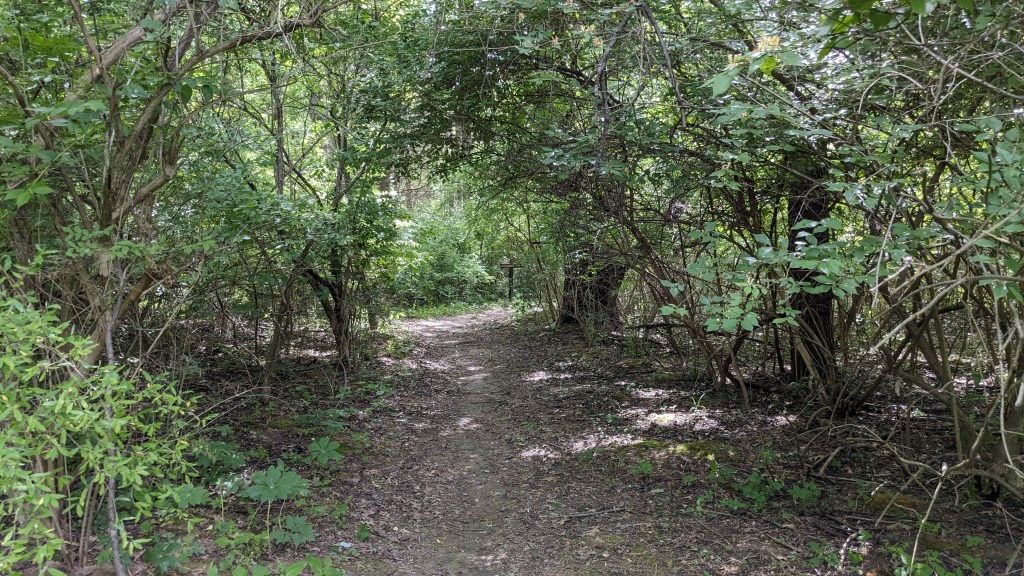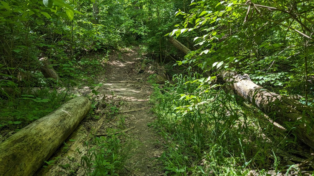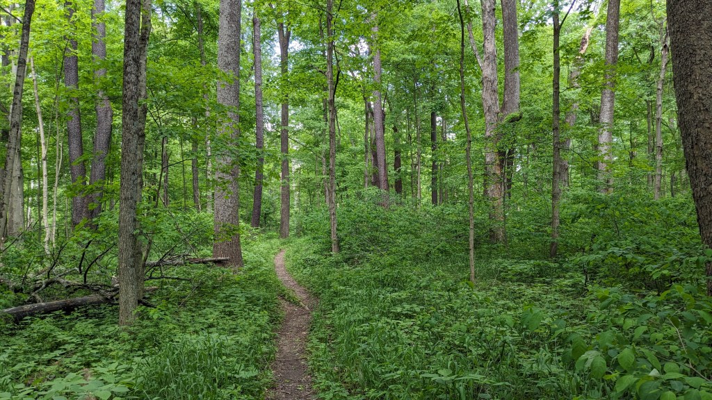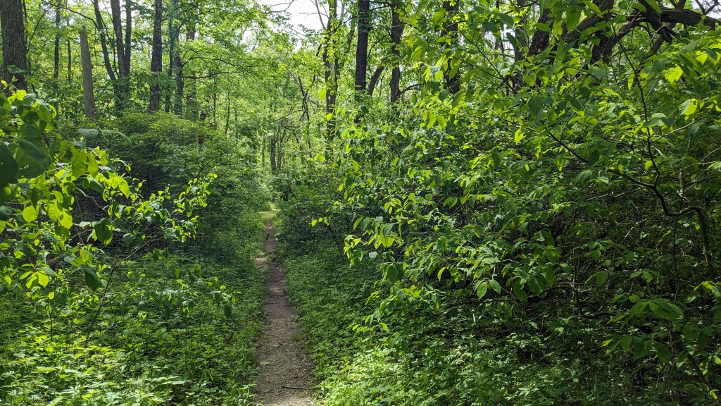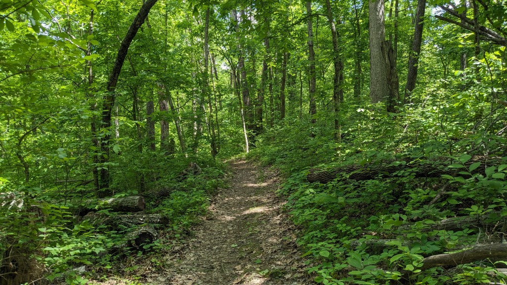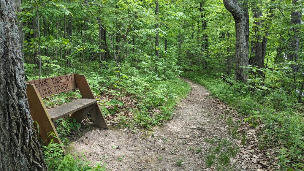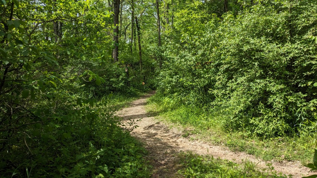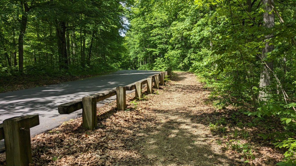 From here, the trail left the lake and traveled inland. Eventually, it made one of its two road crossings and traveled even farther from the lake. This part of the trail follows the eastern border of the park and crosses a horse trail a few times in the process. There was always clear signage as to where to go. The trail came out near the Poplar Shelter which I thought was near where I had started. I wasn’t looking at the map at this point, or I would have realized that I was a half mile or more north of my starting point. From here, the trail parallels the road, sometimes closely… sometimes out of sight of the road. If it had been a Saturday with lots of traffic noise, this part might have been less enjoyable. On a Monday afternoon, there were no more than 2 or 3 cars while I hiked this part.