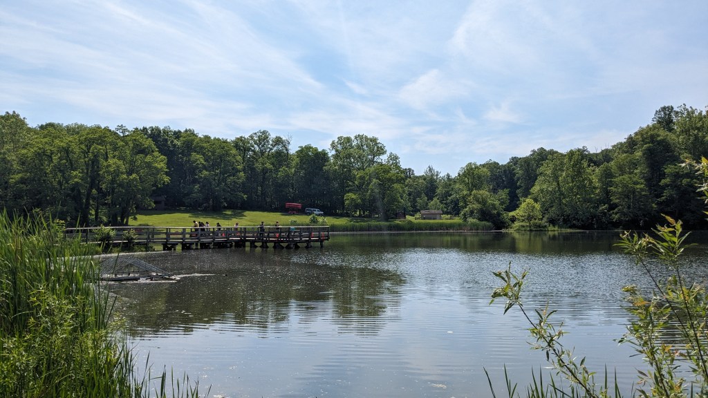 Delaware Lake is a large pond with a fairly large fishing pier and canoe rentals. The paved path actually splits around Delaware lake, so you can hike around it entirely on pavement if you prefer. There are a few small trails that get you closer to the lake and several fishing spots people were using. The trail also continues east to Duck Lake, another mile or so away. If you live in the Indy area, this is a great park to get out and enjoy nature. There is also a large sledding hill for wintertime fun.