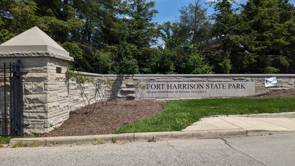 On the coolest day in a month (under 80), I headed up to Indianapolis and to Fort Harrison State Park. Named for Indiana Governor and US President Benjamin Harrison, the Fort itself is still part of the Army Reserves. You don’t have to go through any security to get to the state park. It is a little oasis in the otherwise eastside suburban community of Indianapolis.