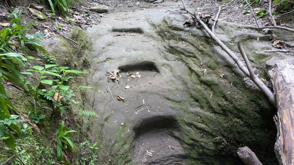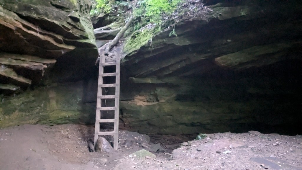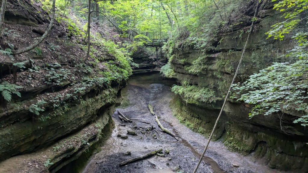 I passed the rugged section of 4 and the moderate section of 5 I had already hiked. I easily found the rugged section of Trail 5 which would be my last for the evening. This was the smallest of the ravines I hiked all day, but that meant that there wasn’t much leeway around obstacles. A set of stairs about halfway up took me around a small waterfall that was still running. I stopped and took a video to capture the unique sound it was making. Finally, I climbed my last ladder of the day in a very rocky and water-carved area of the ravine.