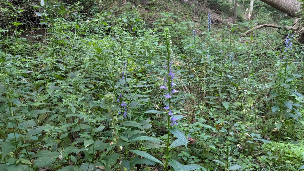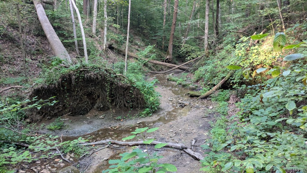 Like Turkey Run SP, most of the trails lead from this high point, which is where the road and parking lot are, down to Sugar Creek, which is the low point. Some of the trails follow the canyon floor and others follow a ridge above the canyon and then use stairs to get down to the creek. All of the trails I hiked did one of these two, so I spent the evening hiking up and down several different canyons and ravines. It sounds like a lot of work, but I actually really enjoy this kind of hiking.
